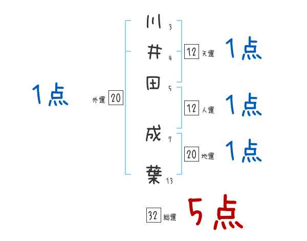 総運![]() | 川井田成葉さんの総運は32画の5つ星!柔軟性があり成功する。チャンスが多く金運が良い。 あなたの人生を表す1番重要な運勢です。生涯を通じて影響する総合運となり、主に50歳以降の晩年期に影響を及ぼします。 |