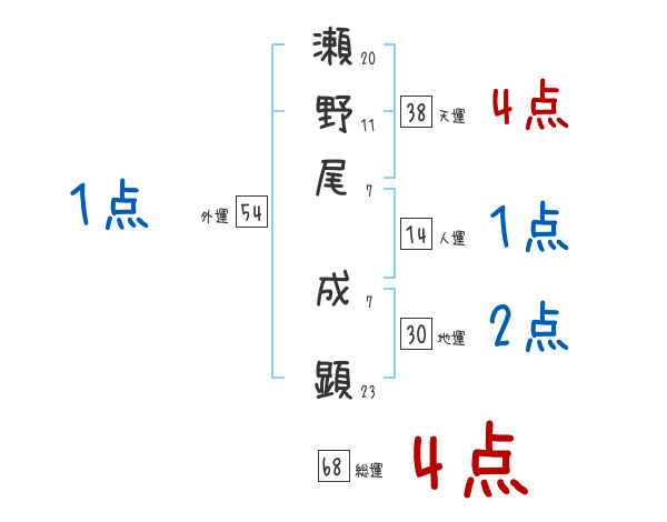 瀬野尾成顕さんの画数の鑑定結果