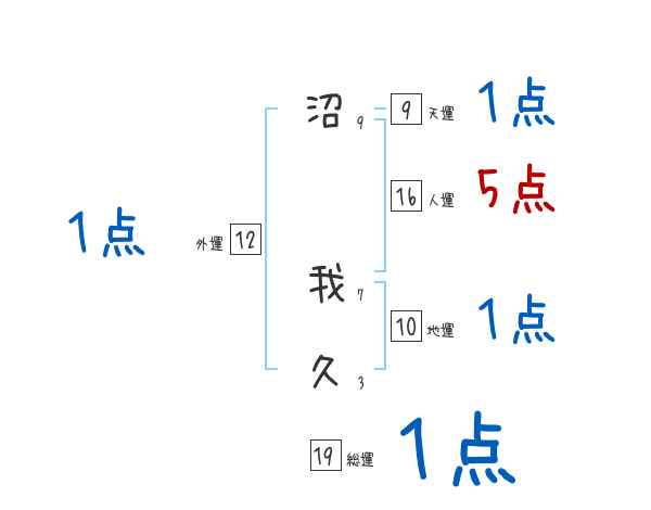 沼我久さんの画数の鑑定結果