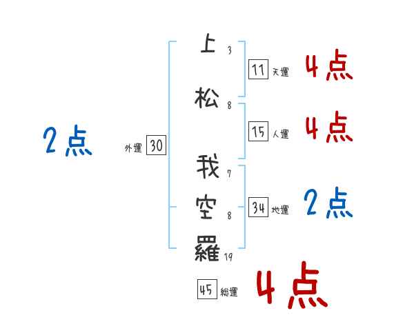 外運![]() | 上松我空羅さんの外運は30画の2つ星!浮き沈みの激しさに注意しましょう。 生活面を象徴する運勢です。外部から受ける影響力を表し、結婚運、家庭運や職場、環境への順応性を表します。 |