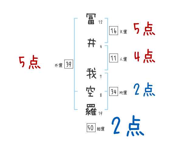 家系が持つ宿命的な運勢を表します。祖先から受け継いだ苗字ですので自分の力が及びません。家柄を象徴します。