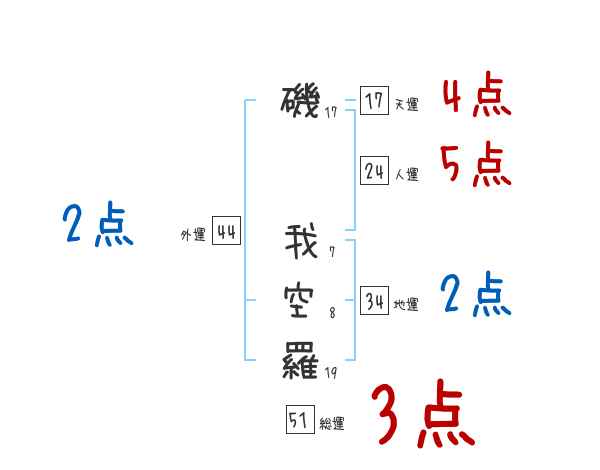 磯我空羅さんの画数の鑑定結果