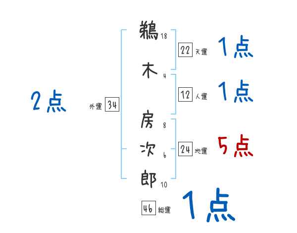 鵜木房次郎さんの画数の鑑定結果