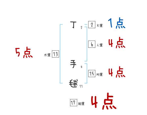 丁手毬さんの総運は17画の4つ星