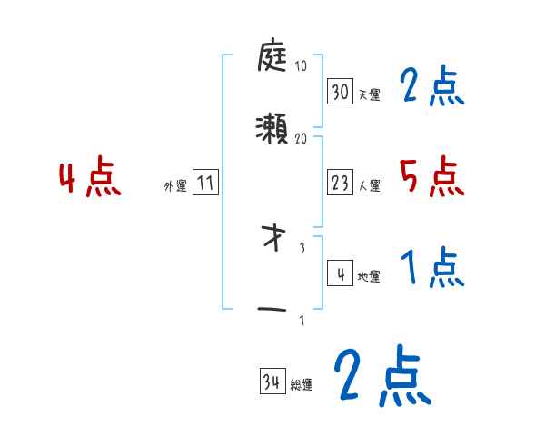 庭瀬才一さんの画数の鑑定結果