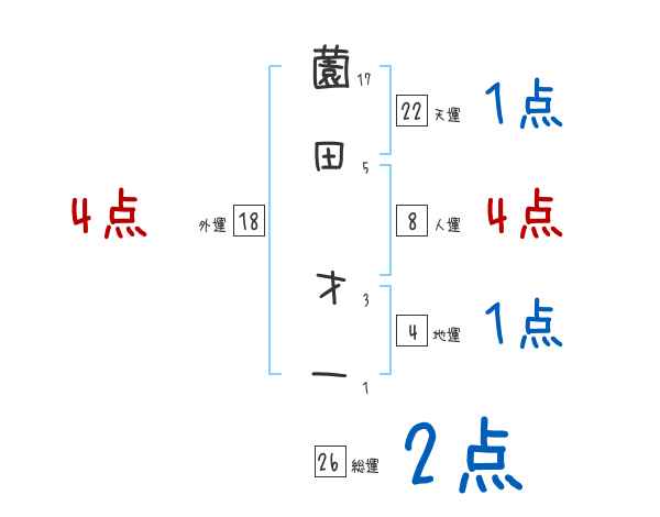 外運![]() | 薗田才一さんの外運は18画の4つ星!情熱的で剛気。忍耐力があり信頼される。 生活面を象徴する運勢です。外部から受ける影響力を表し、結婚運、家庭運や職場、環境への順応性を表します。 |
