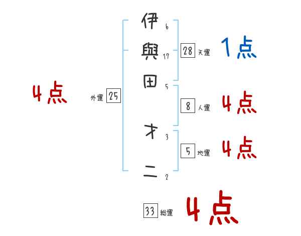 伊與田才二さんの画数の鑑定結果