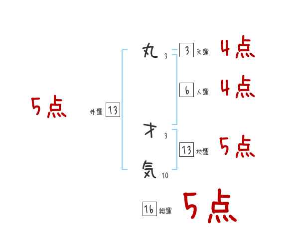 丸才気さんの画数の鑑定結果
