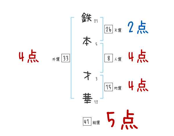 鉄本才華さんの画数の鑑定結果