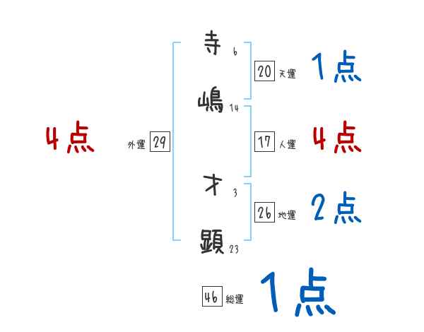 寺嶋才顕さんの画数の鑑定結果