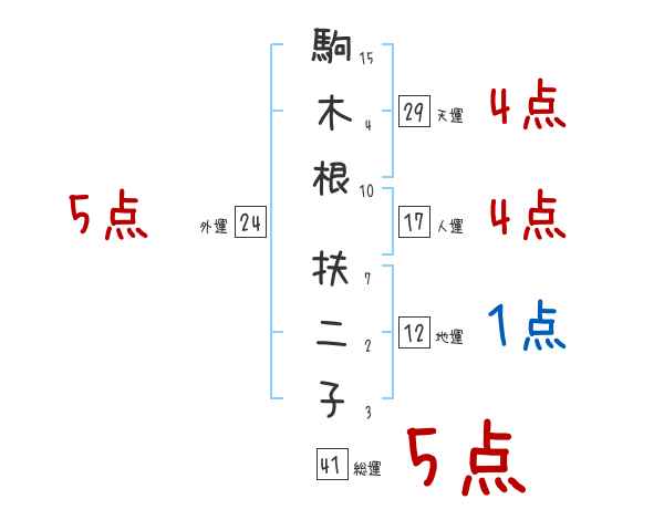 天運![]() | 駒木根扶二子さんの天運は29画の4つ星!完全主義で才能がある。厳格な心の持ち主。 家系が持つ宿命的な運勢を表します。祖先から受け継いだ苗字ですので自分の力が及びません。家柄を象徴します。 |