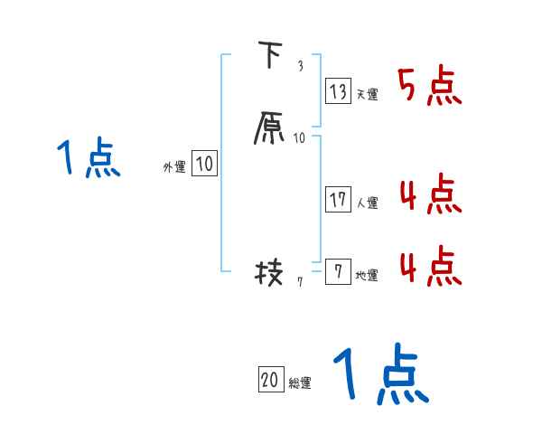 下原技さんの画数の鑑定結果