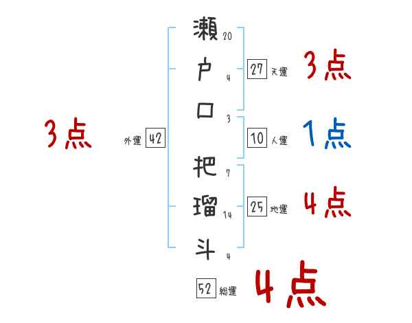 瀬戸口把瑠斗さんの画数の鑑定結果
