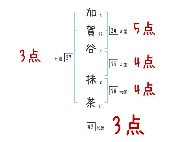 加賀谷抹茶さんの画数の鑑定結果