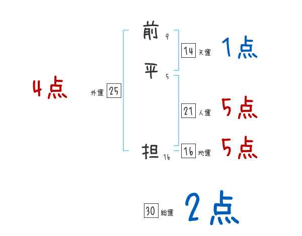 前平担さんの画数の鑑定結果
