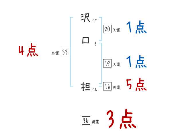 沢口担さんの画数の鑑定結果