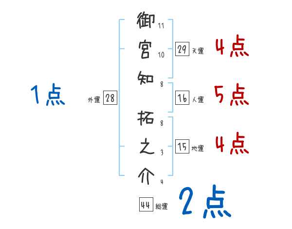 御宮知拓之介さんの画数の鑑定結果
