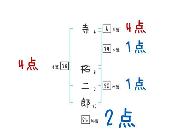 寺拓二郎さんの画数の鑑定結果