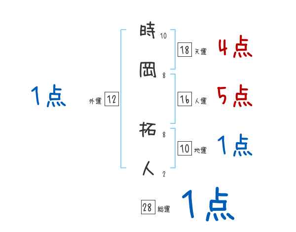 時岡拓人さんの画数の鑑定結果