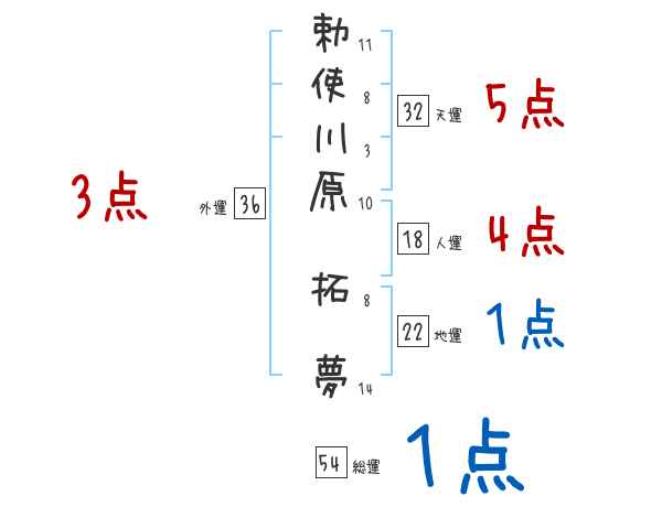 勅使川原拓夢さんの画数の鑑定結果