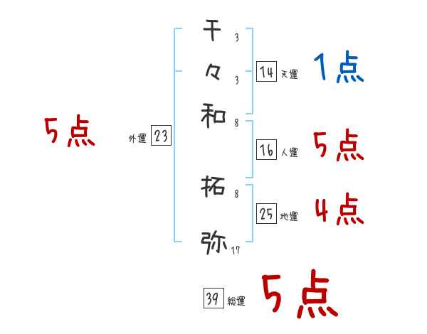 千々和拓弥さんの画数の鑑定結果