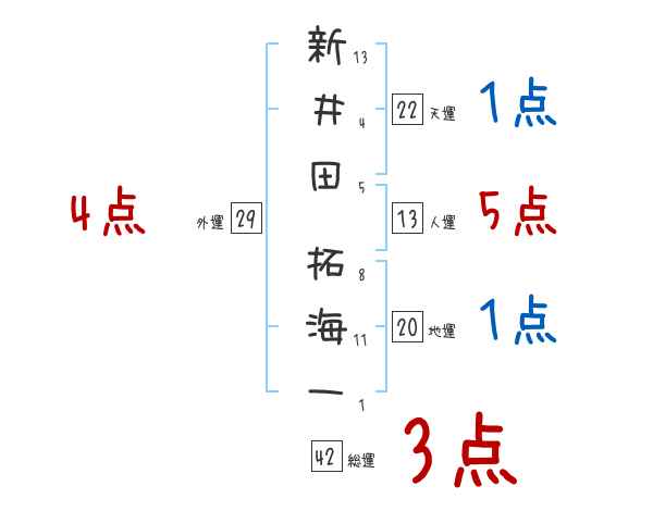 新井田拓海一さんの画数の鑑定結果
