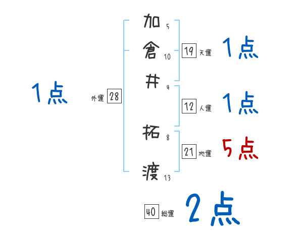 加倉井拓渡さんの画数の鑑定結果