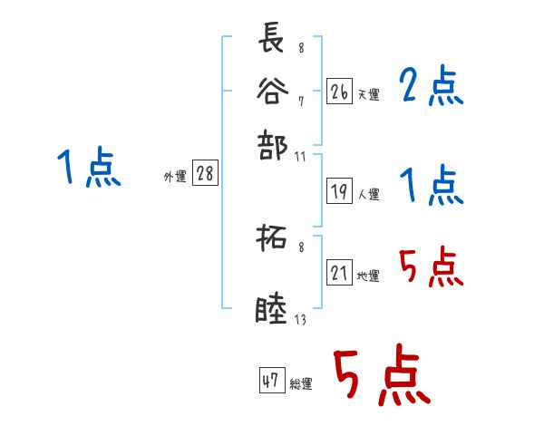 長谷部拓睦さんの画数の鑑定結果