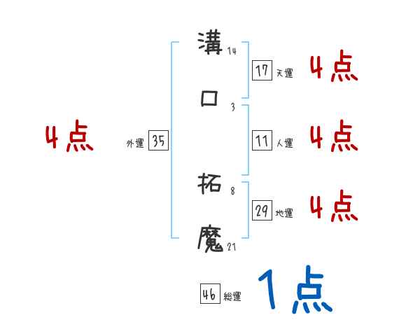 溝口拓魔さんの画数の鑑定結果