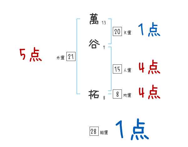 萬谷拓さんの画数の鑑定結果
