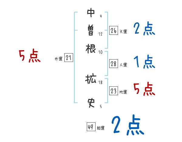 中曽根拡史さんの画数の鑑定結果