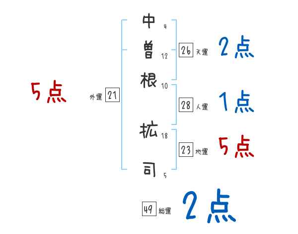 中曽根拡司さんの画数の鑑定結果