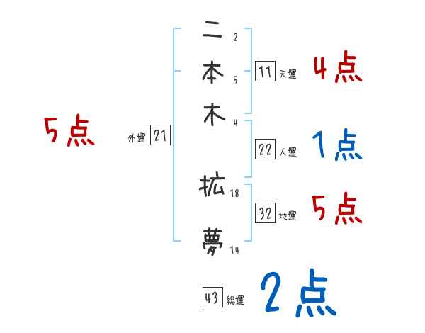 二本木拡夢さんの画数の鑑定結果