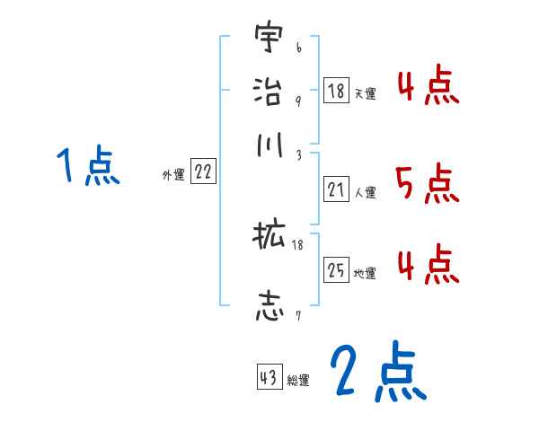 宇治川拡志さんの画数の鑑定結果