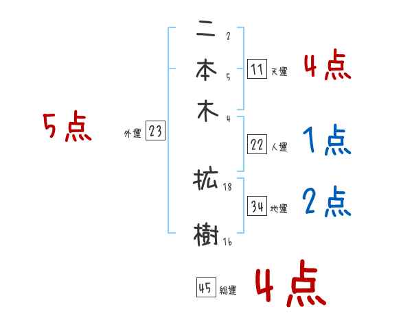 二本木拡樹さんの画数の鑑定結果