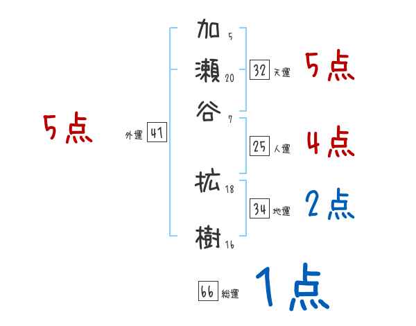 加瀬谷拡樹さんの画数の鑑定結果