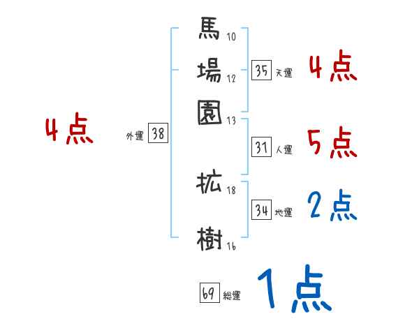 馬場園拡樹さんの画数の鑑定結果