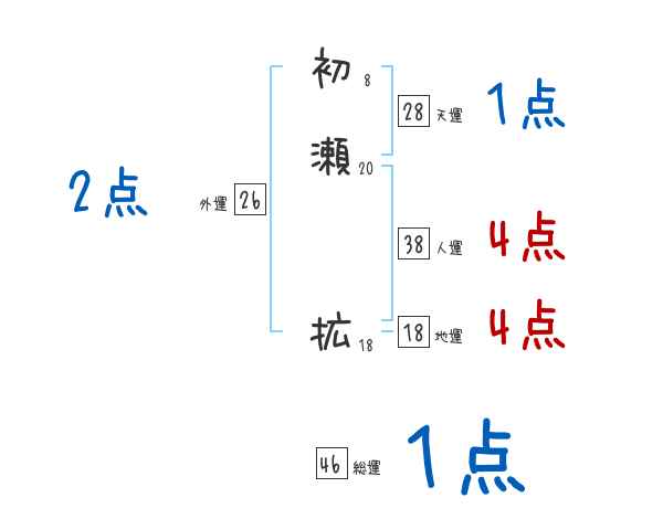 初瀬拡さんの画数の鑑定結果