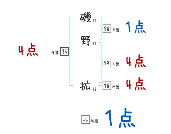磯野拡さんの画数の鑑定結果