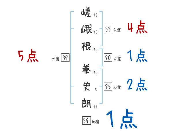 嵯峨根拳史朗さんの画数の鑑定結果