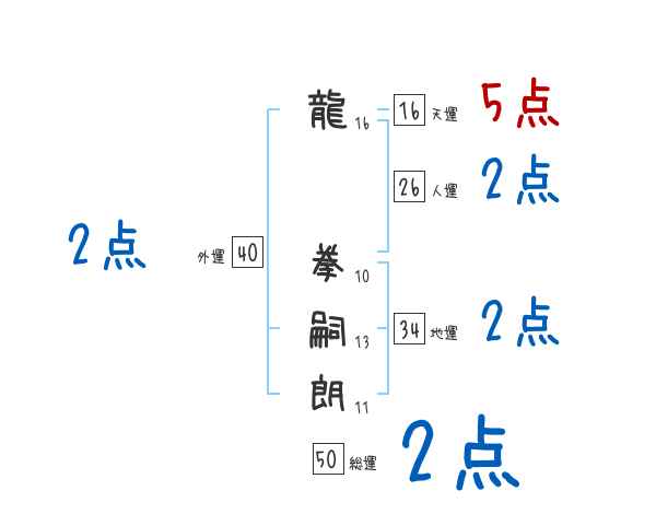 龍拳嗣朗さんの画数の鑑定結果