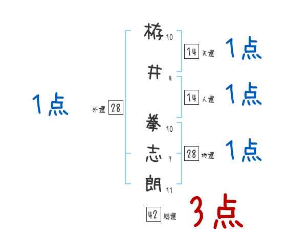 総運![]() | 栫井拳志朗さんの総運は42画の3つ星!病気に注意。多芸であるが消極的でおとなしい。 あなたの人生を表す1番重要な運勢です。生涯を通じて影響する総合運となり、主に50歳以降の晩年期に影響を及ぼします。 |