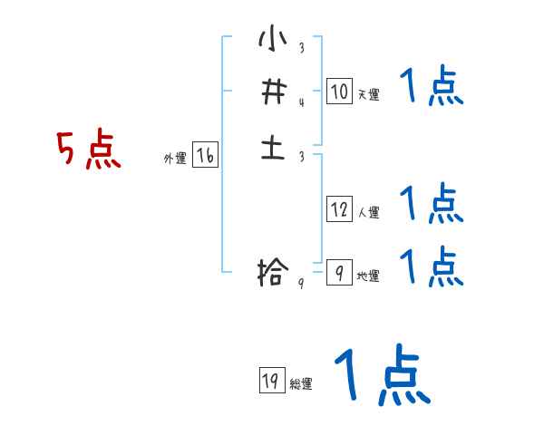 外運![]() | 小井土拾さんの外運は16画の5つ星!人望が厚く大きく発展する。逆転成功が見える。 生活面を象徴する運勢です。外部から受ける影響力を表し、結婚運、家庭運や職場、環境への順応性を表します。 |