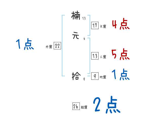 楠元拾さんの画数の鑑定結果