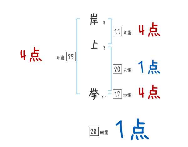 岸上挙さんの画数の鑑定結果