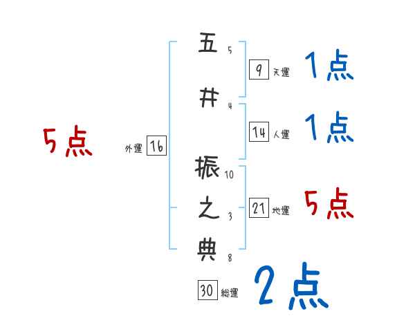 五井振之典さんの画数の鑑定結果