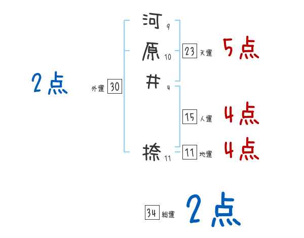 河原井捺さんの画数の鑑定結果