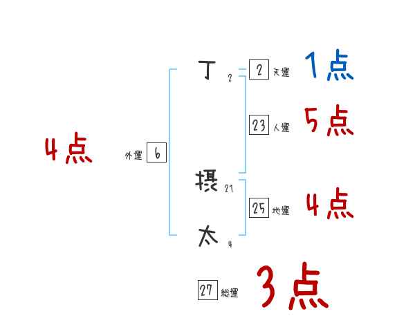 丁摂太さんの画数の鑑定結果