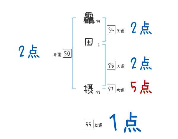 靏田摂さんの画数の鑑定結果