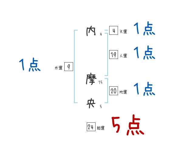 内摩央さんの画数の鑑定結果